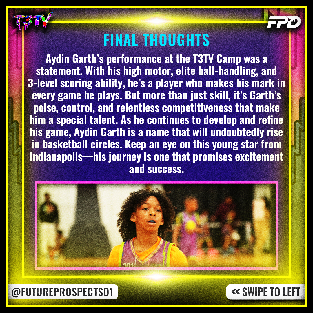 Aydin Garth’s performance at the T3TV Camp was a statement. With his high motor, elite ball-handling, and 3-level scoring ability, he’s a player who makes his mark in every game he plays. But more than just skill, it’s Garth’s poise, control, and relentless competitiveness that make him a special talent. As he continues to develop and refine his game, Aydin Garth is a name that will undoubtedly rise in basketball circles. Keep an eye on this young star from Indianapolis—his journey is one that promises excitement and success.