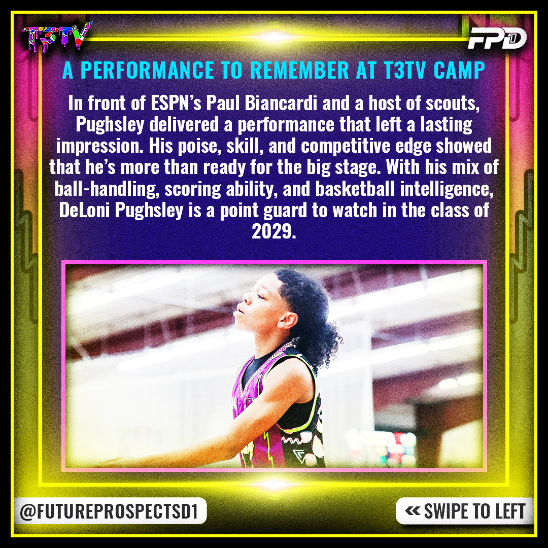In front of ESPN’s Paul Biancardi and a host of scouts, Pughsley delivered a performance that left a lasting impression. His poise, skill, and competitive edge showed that he’s more than ready for the big stage. With his mix of ball-handling, scoring ability, and basketball intelligence, DeLoni Pughsley is a point guard to watch in the class of 2029.