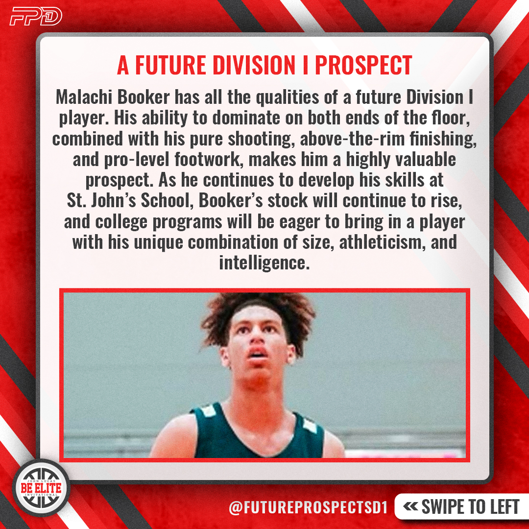 Malachi Booker has all the qualities of a future Division I player. His ability to dominate on both ends of the floor, combined with his pure shooting, above-the-rim finishing, and pro-level footwork, makes him a highly valuable prospect. As he continues to develop his skills at St. John’s School, Booker’s stock will continue to rise, and college programs will be eager to bring in a player with his unique combination of size, athleticism, and intelligence.