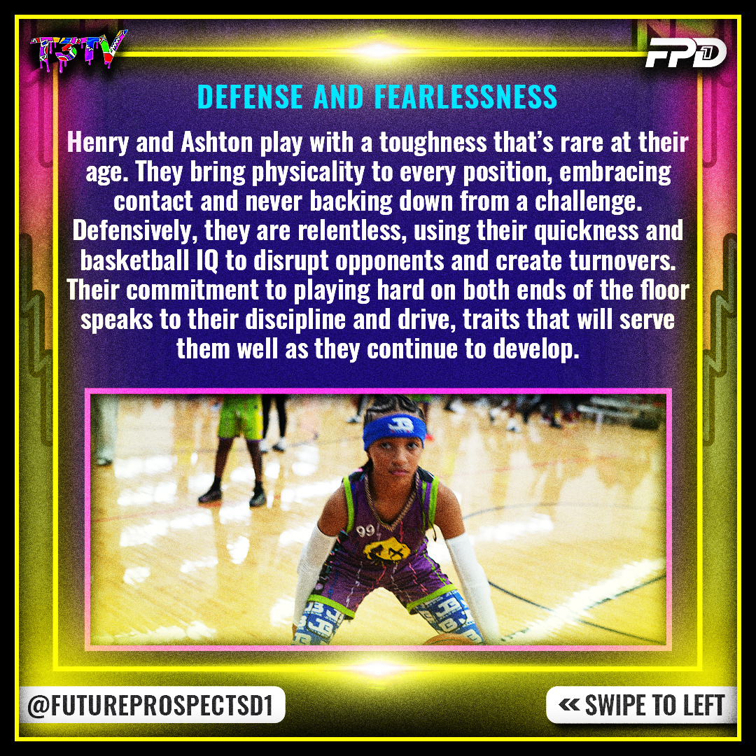 Their strong ball-handling skills allow them to navigate defenses with ease, maintaining control in high-pressure situations. Henry, in particular, has a knack for staying calm in intense environments, showing a level of composure that sets him apart. Ashton, equally competitive, brings a high-energy presence and tenacity that make him tough to guard.